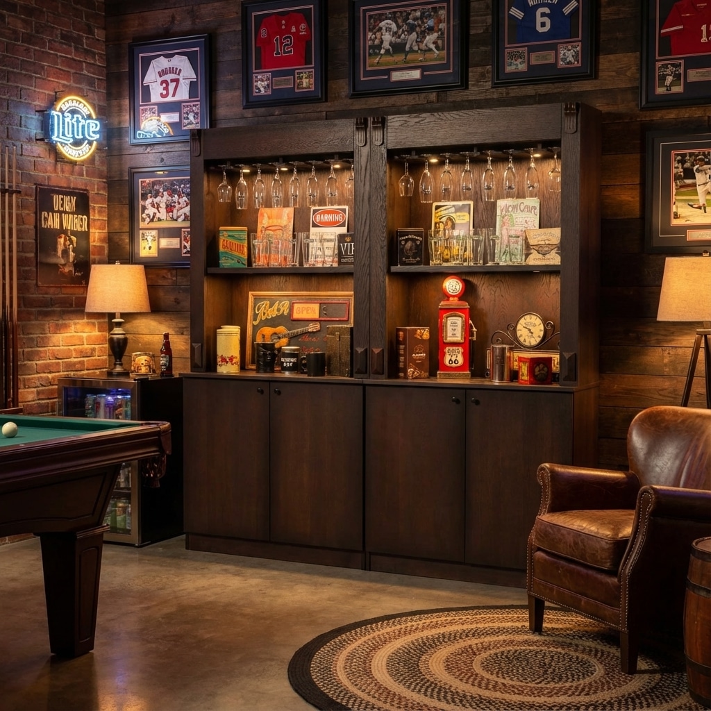 Maar waar begin je als je die ruimte wilt maken? De meeste mensen starten met het grootste statement-meubel: de bar. En dat is logisch. Een bar is het middelpunt van elke mancave, de plek waar verhalen beginnen en avonden langer worden.