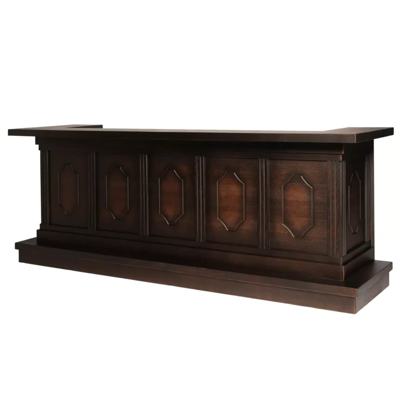 De Horecabar Metropolitain 3 meter is een karaktervolle bar met een klassieke bruin café-uitstraling, ideaal voor wie een warme, authentieke sfeer wil creëren. Door de notenkleurige afwerking en robuuste uitstraling past deze bar perfect in een mancave, bedrijfskantine of kleine horecagelegenheid waar gezelligheid centraal staat.