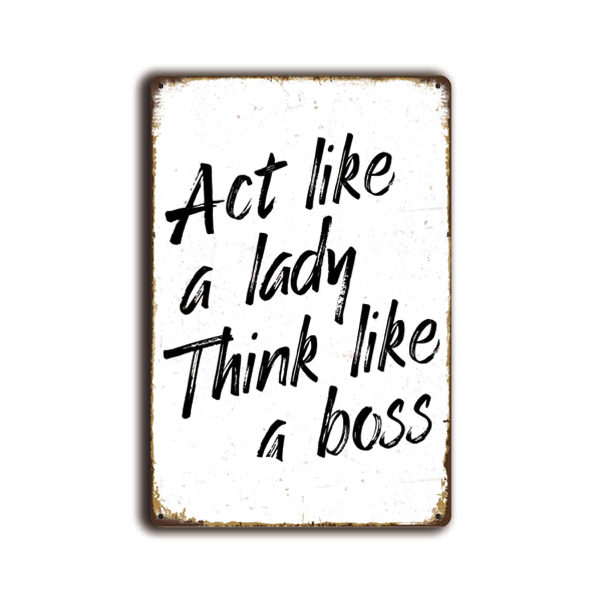 Metalen wandbord Act like a lady, think like a boss