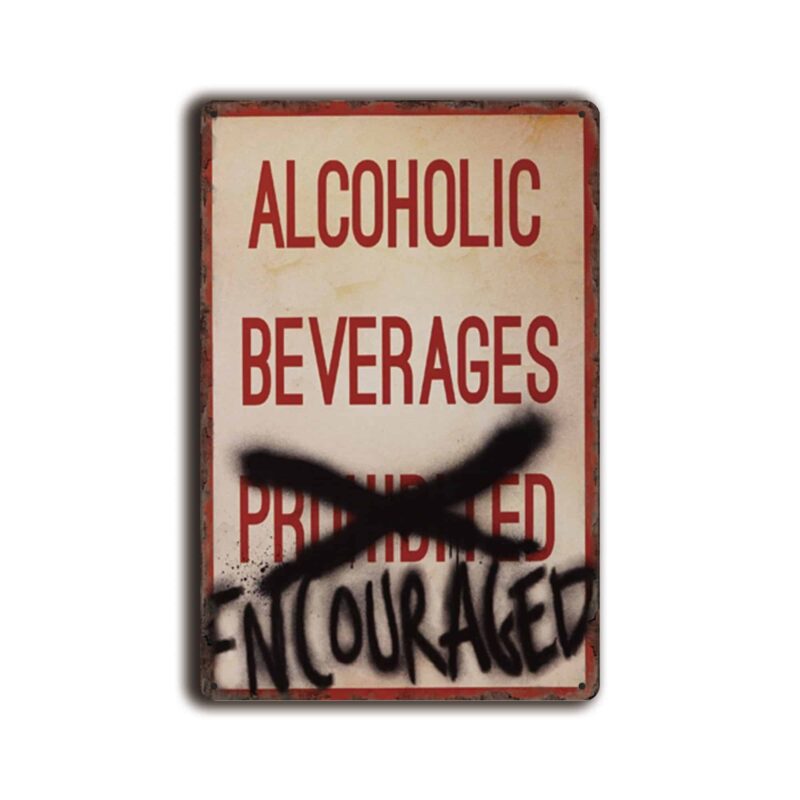Kenmerken van het Metalen Wandbord Alcoholic Beverages Encouraged