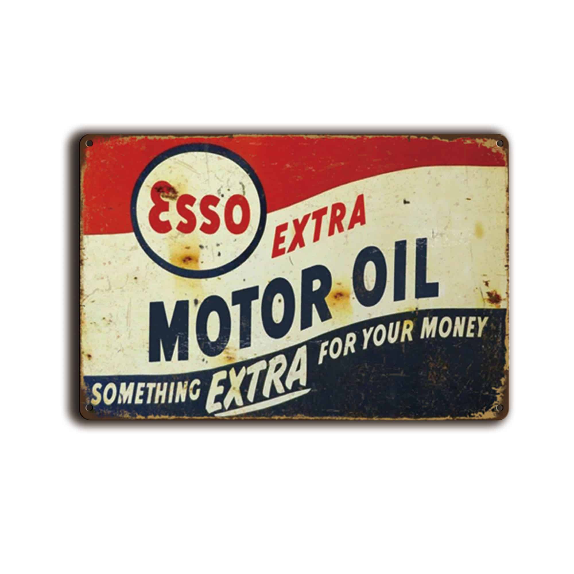 Verrijk Je Ruimte met het Metalen Wandbord “Esso Extra Motor Oil: Something Extra for Your Money”