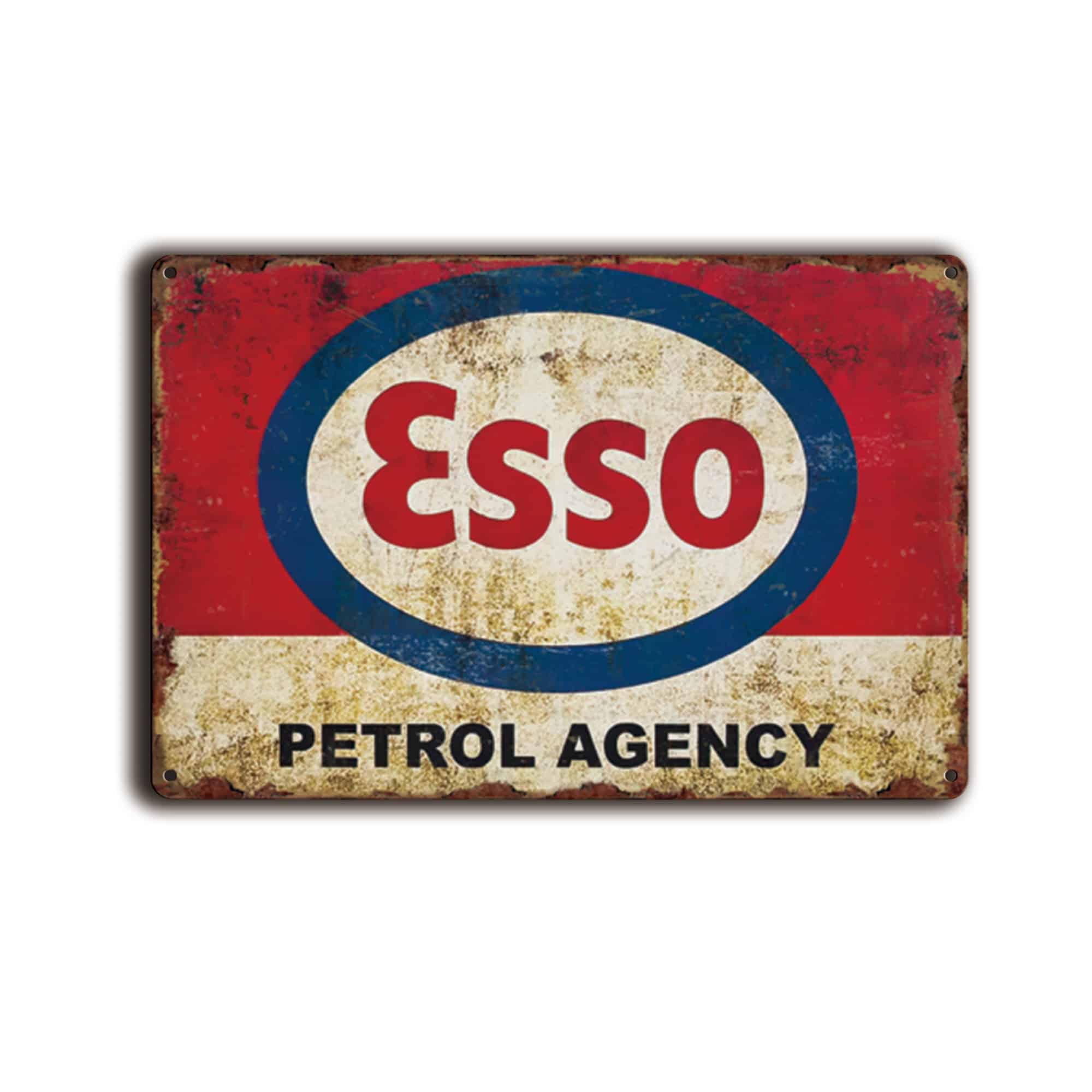 Het bord is gemaakt van duurzaam metaal en heeft een afmeting van 30 cm x 20 cm. Het ontwerp is eenvoudig en klassiek, met het bekende Esso-logo dat centraal staat tegen een achtergrond die de vintage stijl benadrukt. De authentieke uitstraling maakt het een must-have voor elke verzamelaar of liefhebber van automobielgeschiedenis.