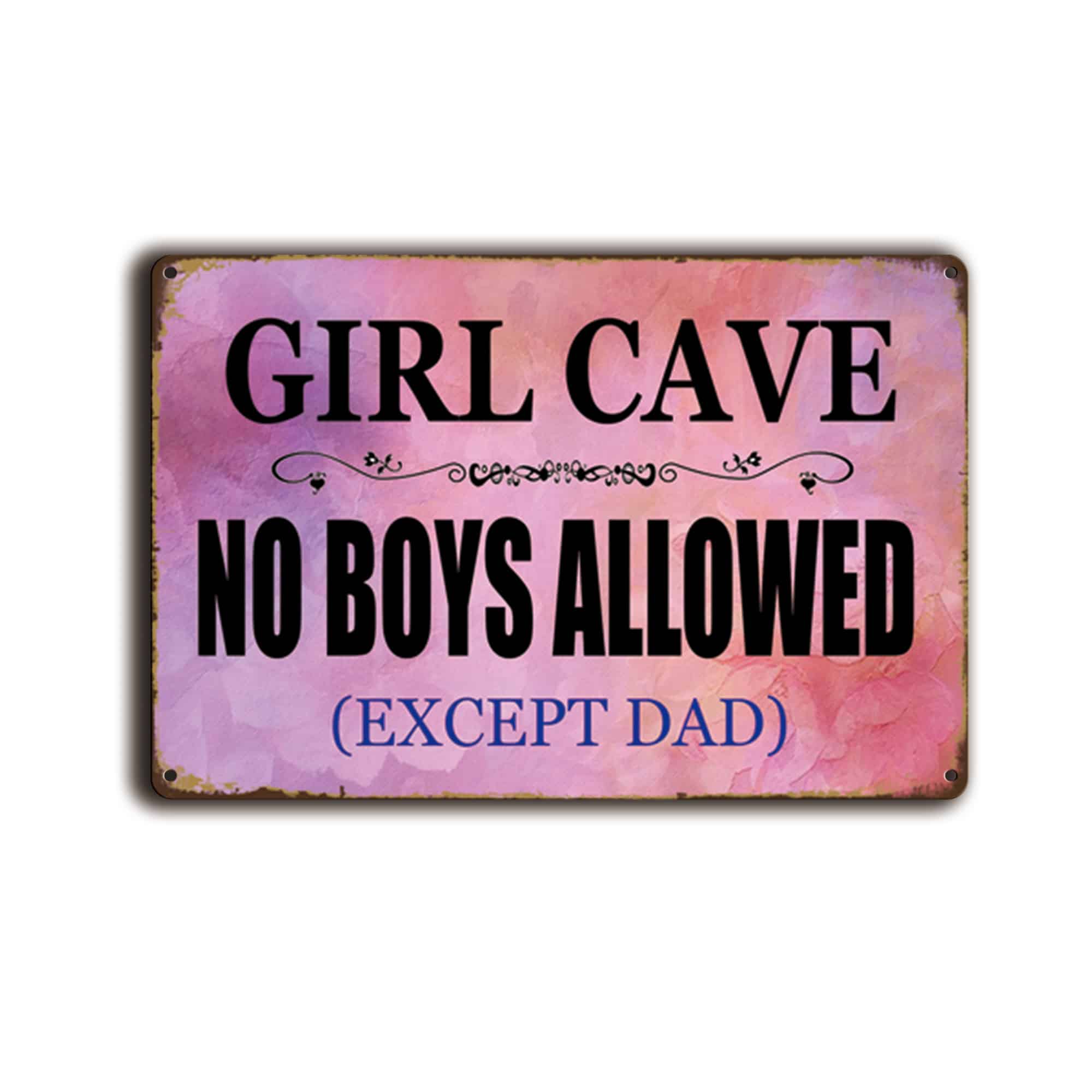 Metalen wandbord Girl cave No boys allowed (Except dad)