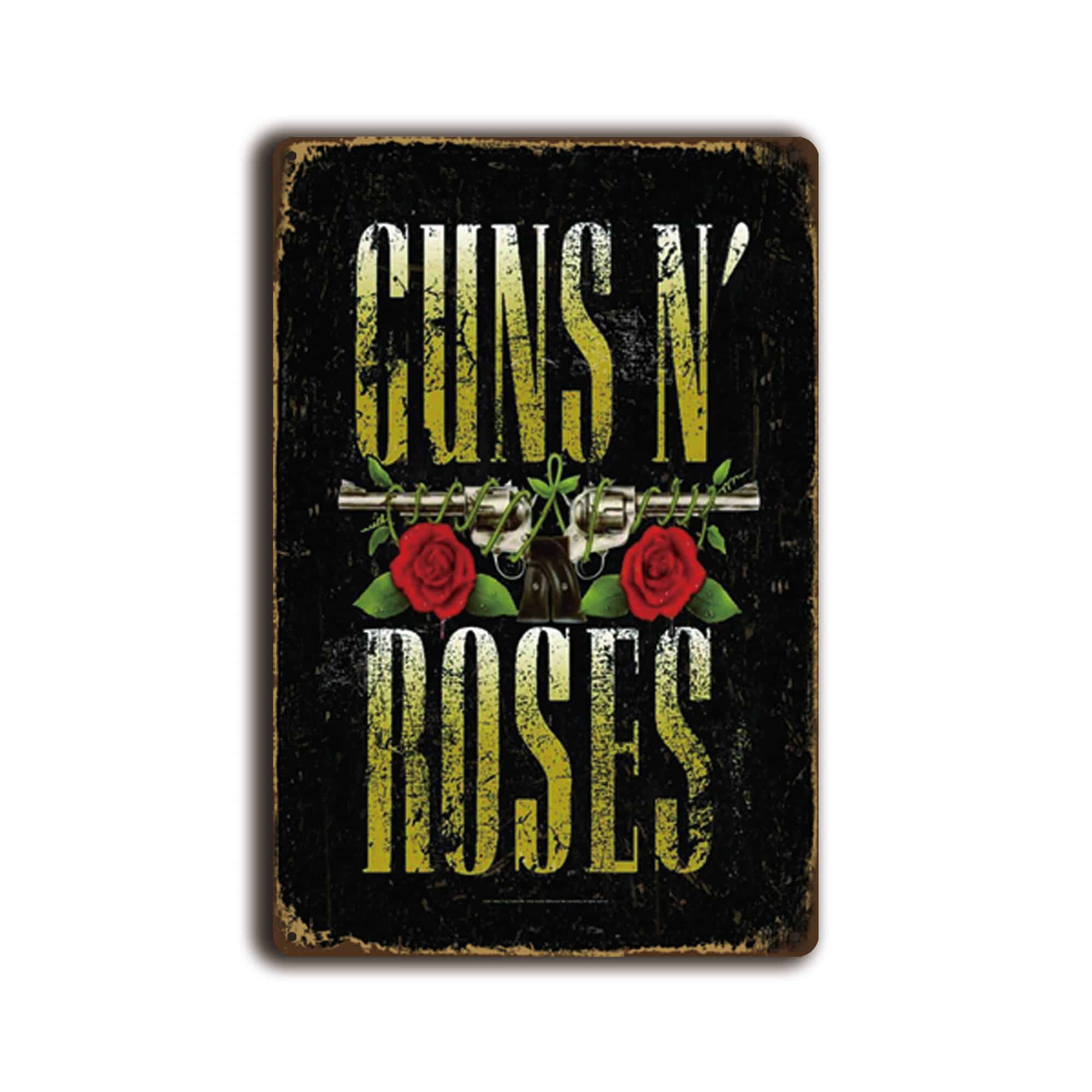 Guns N’ Roses, beroemd om nummers als “Sweet Child o’ Mine” en “November Rain”, heeft een onuitwisbare stempel gedrukt op de muziekwereld. Het logo, met de gekruiste revolvers en rozen, symboliseert de perfecte mix van gevaar en romantiek die de muziek en het imago van de band kenmerkt. Dit wandbord brengt die essentie overal waar het hangt.
