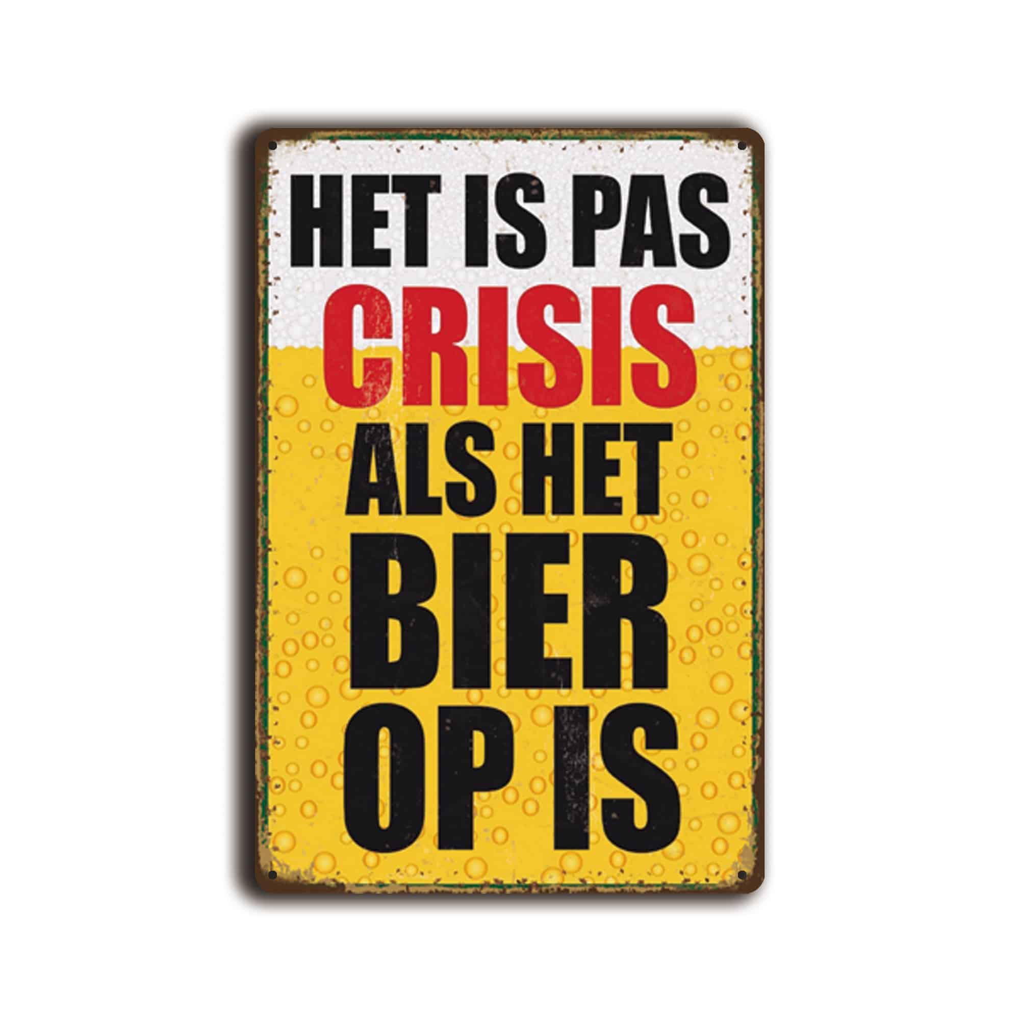Metalen wandbord Het is pas crisis als het bier op is