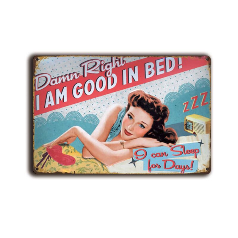 Dit wandbord combineert een humoristische boodschap met een speelse knipoog naar iemands slaapkwaliteiten. Met de tekst “I Can Sleep for Days (Damn Right I Am Good in Bed)” wordt op een luchtige manier gespeeld met de dubbelzinnigheid van goed zijn in bed, wat zowel slaap als andere connotaties kan impliceren. Het is een perfecte aanvulling voor de slaapkamer of een lounge waar een ontspannen sfeer heerst.