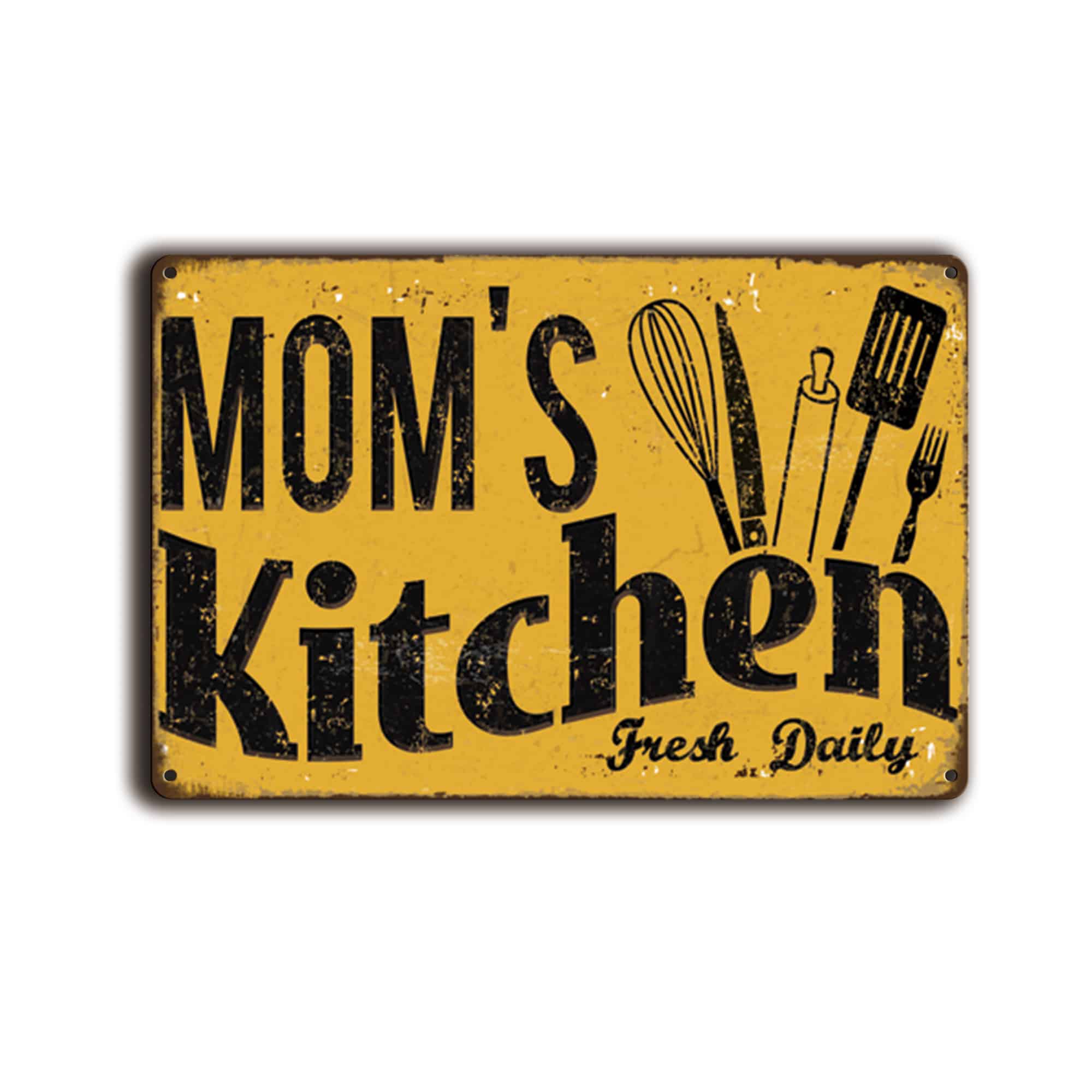 Voeg Huiselijke Warmte Toe met het Metalen Wandbord “Mom’s Kitchen Fresh Daily”