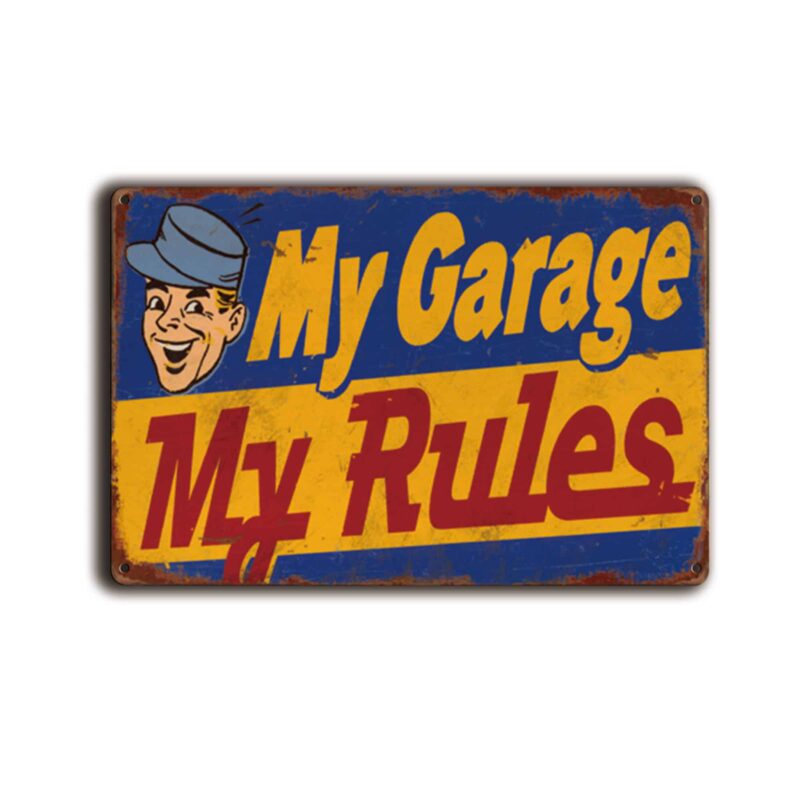 Voeg een Klassieke Touch toe met het Metalen Wandbord “My Garage, My Rules”