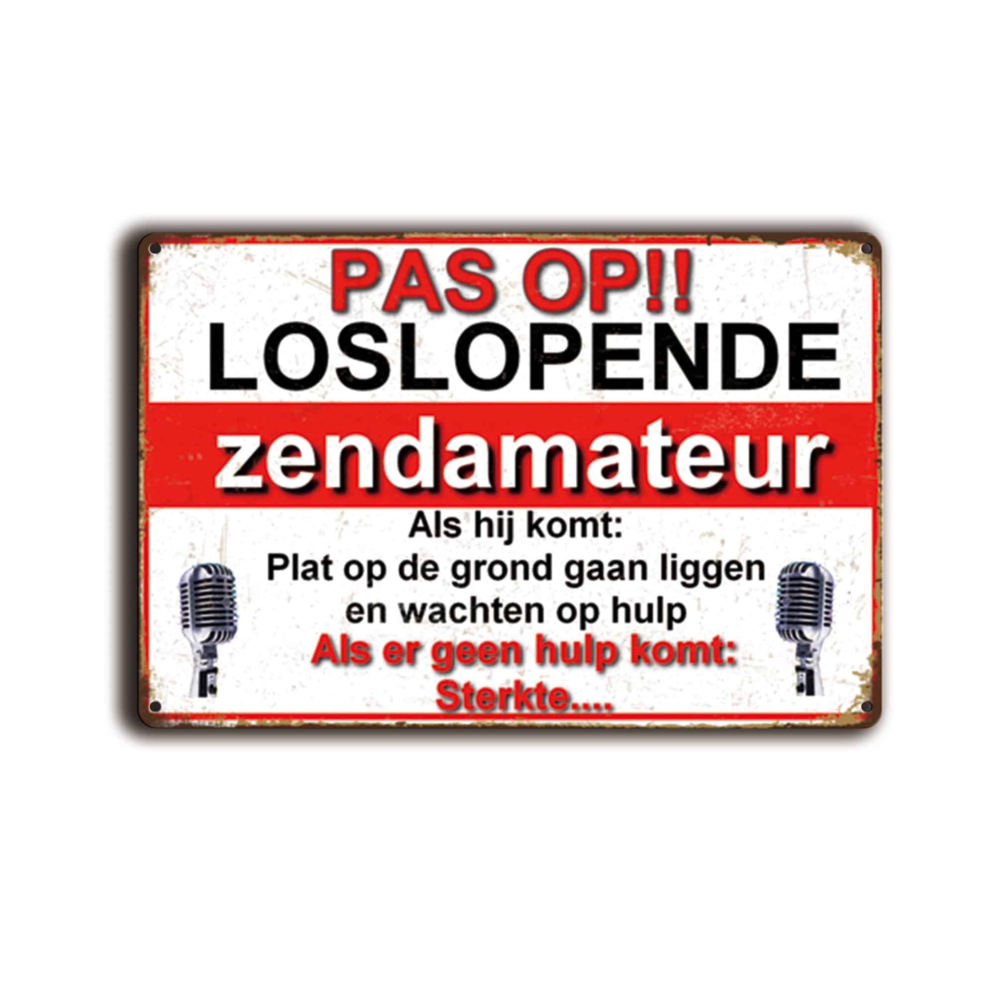 Het Metalen Wandbord “Pas op! Loslopende Zendamateur”