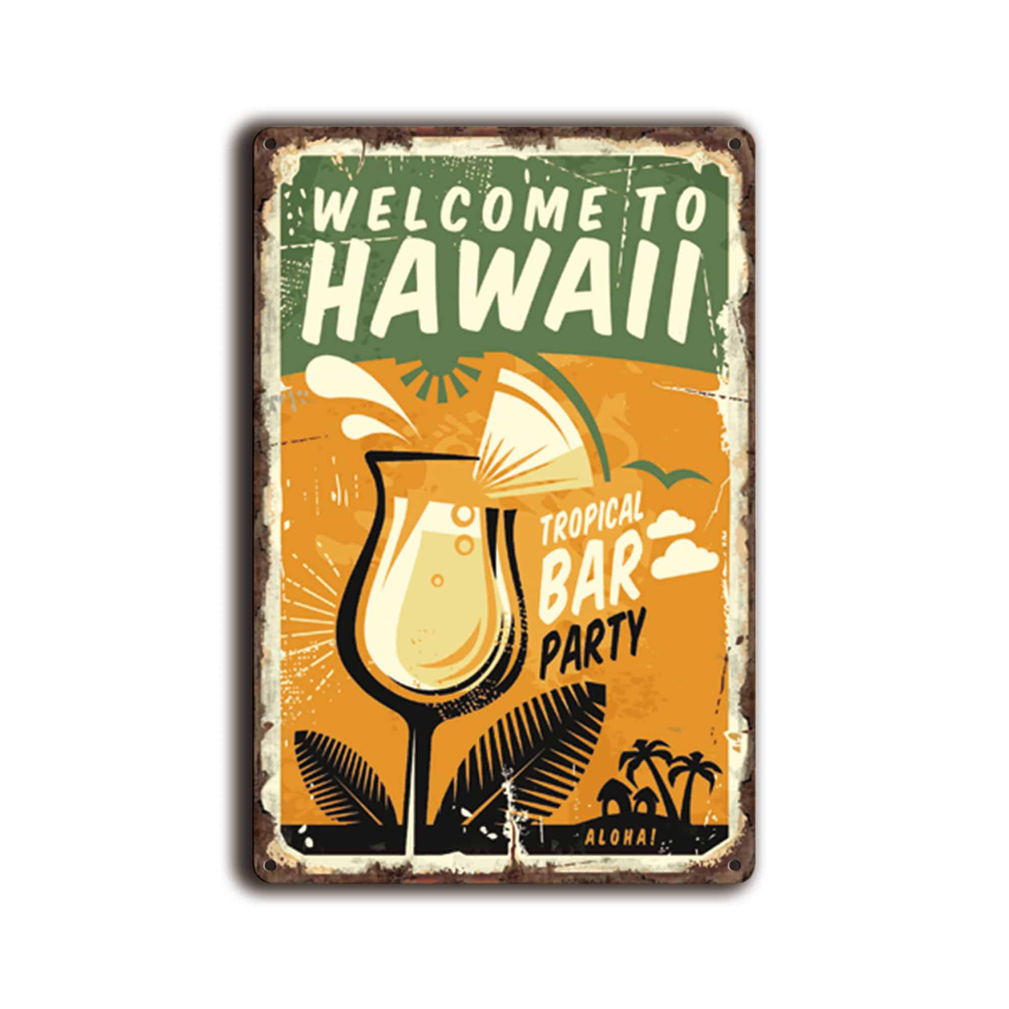 Metalen wandbord Welcome to Hawaï “tropical Bar party”